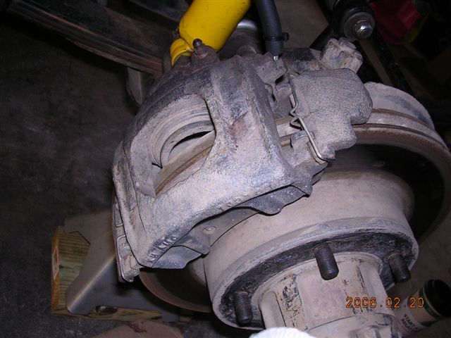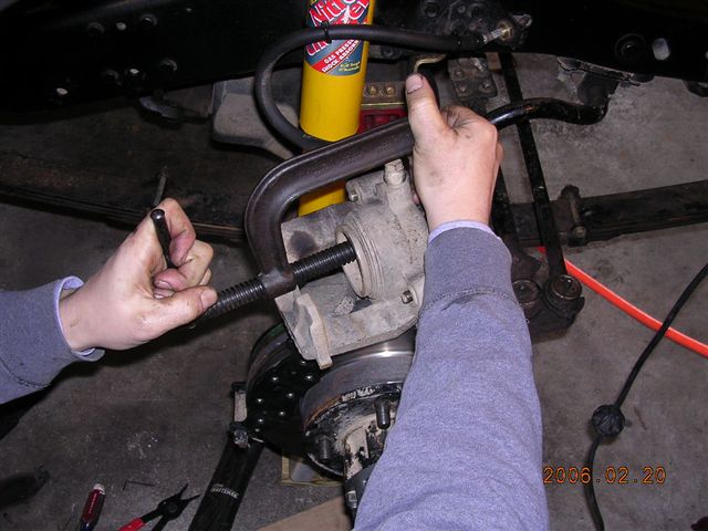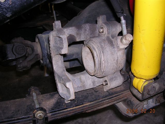 - Remove the calipers by loosening the 2 torx bolts. (81 – 86 CJ) 76 – 80 CJ’s use a center bolt that holds a shim that is knocked out by tapping it lightly with a drift.
