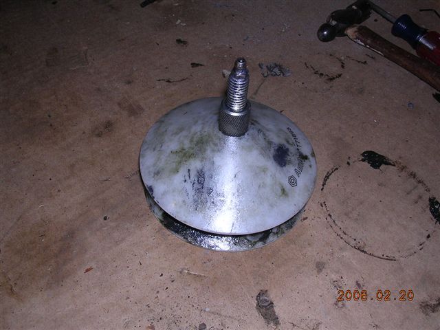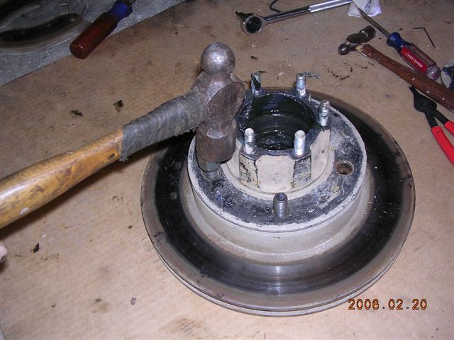 - A press would be handy at this point but a heavy hammer and an old lug nut will work fine.