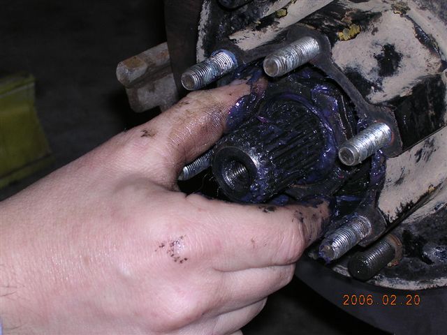 - Grease the inside of the hub filling it with grease.