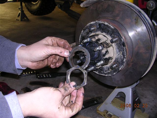 - After the hub is removed the outer wheel hub nut can be removed followed by a washer, then remove the inner nut and washer.
