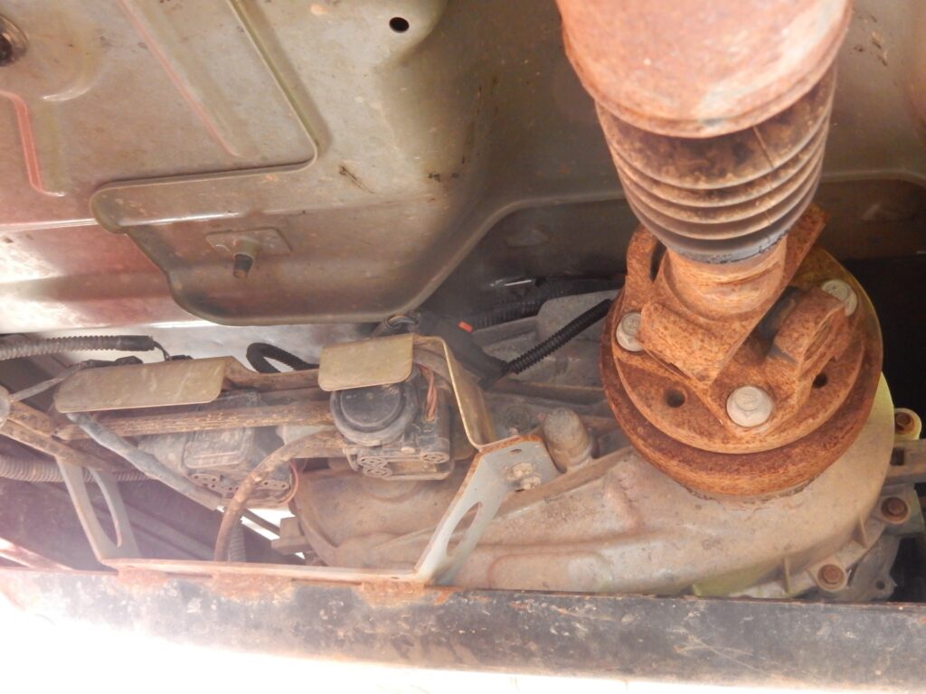 - Identifying: Output yokes separated on case, no parking brake assembly, Texas shaped mounting flange.
